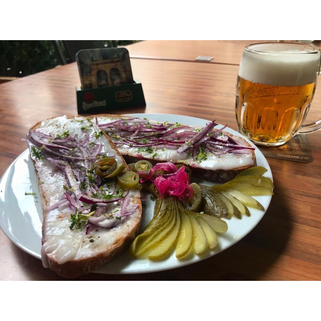 porce Domácí škvarková pomazánka s čerstvým chlebem a okurkou